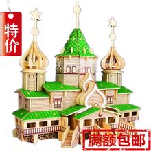 木制仿真模型儿童益智DIY玩具木质拼装3D立体拼图俄罗斯圣诞大屋