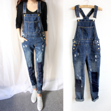 2015秋冬深蓝色宽松破洞牛仔背带裤女显瘦小垮裤时尚25码韩版磨破