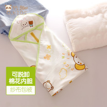 竹趣 新生儿包被春秋冬季婴儿卡通抱被棉花内胆可脱卸新生儿用品