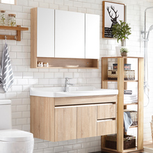 橡木浴室柜组合 小户型PVC浴室柜吊柜镜柜洗漱台洗手洗脸盆柜组合