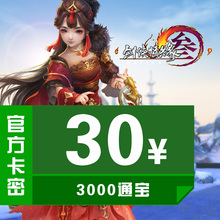 金山一卡通/剑网三/剑侠情缘3/剑侠世界 30元3000通宝 官方卡密