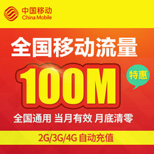 全国移动流量充值100MB 全国2G3G4G流量通用 手机流量移动流量包