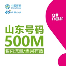 山东移动本地流量充值包 500M冲手机叠加包 2g3g4g省内