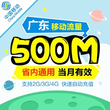 广东移动本地流量充值500M 手机流量叠加包 省内加油包特惠