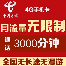中国电信4g手机卡0月租号码卡无长途无漫游流量卡上网卡电信套餐