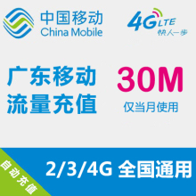广东移动流量充值 30MB 全国流量 自动充值 手机流量叠加包