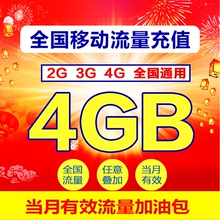 中国移动流量充值4GB 全国流量加油包 2G3G4G网络通用 流量充值包