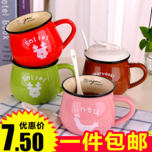 早餐杯马克杯咖啡牛奶杯可爱创意陶瓷情侣水杯子带盖勺包邮
