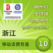 浙江移动话费充值10元 自动充值 即时到账 手机充值 快充