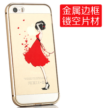 iphone5手机壳5s苹果5女款金属边框可爱卡通透明后盖全包边韩国潮