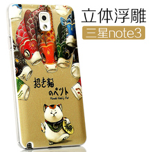 三星note3手机壳保护套n9008v超薄磨砂卡通浮雕后盖手机套男女