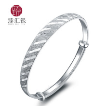 999足银手镯 女磨砂光面可调节纯银镯子时尚饰品全国包邮