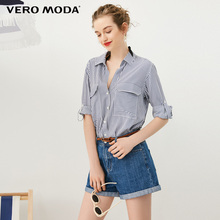 Vero Moda2017春季新品V领落肩袖牛仔衬衫|317153504
