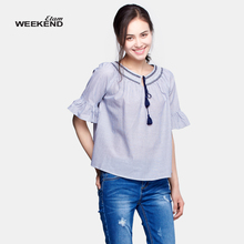 艾格Weekend 秋季时尚百搭蝴蝶结甜美短袖宽松衬衫女160214274