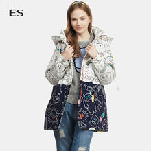 艾格 ES 冬季时尚百搭涂鸦卡通拼接连帽棉服16033207186