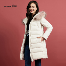 艾格 Weekend 冬季纯色休闲连帽带毛领羽绒服女160235004