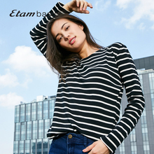 艾格 Etam basic 春季黑白条纹圆领长袖T恤女162028014