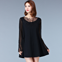 麦士惠2017春装新款大码胖mm韩版a字裙宽松蕾丝刺绣连衣裙