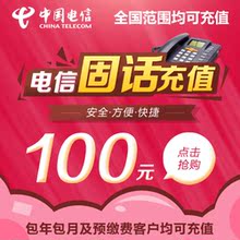 全国电信固话自动充值100元固定电话费缴费 支持包年包月预缴用户