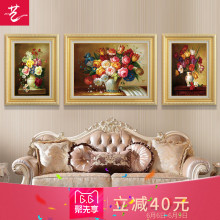 小艺欧式油画客厅沙发后装饰画简欧挂画背景墙上画三联画餐厅壁画