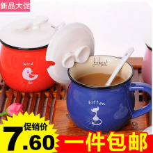 简约咖啡杯子陶瓷杯创意早餐杯情侣马克杯带盖勺办公室水杯牛奶杯