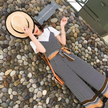 2017夏装新款韩版竖纹高腰显瘦雪纺吊带连体裤女收腰阔腿连衣短裤