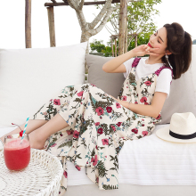 2017夏季新款韩版套装女宽松T恤碎花百褶吊带连衣裙长裙子两件套