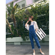 2017春秋新款韩版高腰牛仔背带裤女宽松学生九分裤显瘦吊带连体裤