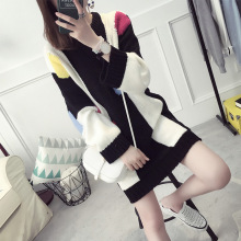 2016秋季针织衫女装中长款打底衫学生拼接毛衣女套头宽松韩版秋装