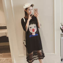 裙子女夏季2017新款潮学生韩版短袖连衣裙网纱拼接T恤裙娃娃长裙