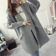 2017春装中长款宽松毛衣开衫外套女秋冬连帽加厚女装春秋学院风潮