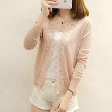 蕾丝外搭开衫薄外套2017夏季女装短款镂空冰丝针织衫女开衫空调衫