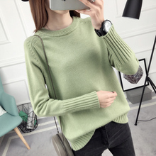 2016秋装新款韩版显瘦高领毛衣女冬天针织衫圆领长袖蕾丝打底衫厚