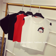 夏韩版短款高腰露脐宽松卡通小丸子外穿背心上衣女装无袖t恤学生