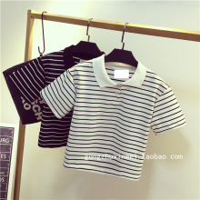 基础款条纹短袖T恤女春百搭翻领高腰短款上衣夏装显瘦POLO衫韩版
