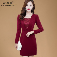 2015秋季新款韩版亮片装饰长袖收腰修身裙女装OL职业气质连衣裙