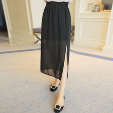 雪纺侧开叉半身裙女夏2017新款高腰中长款包裙显瘦学生一步裙春季