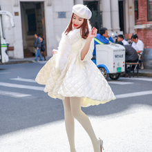 华奢现货2016新品冬装女甜美公主五分袖中长款外套绒棉衣棉服