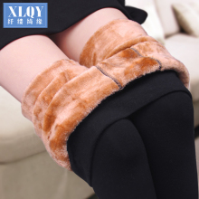 xlqy加厚羊羔绒外穿打底裤加绒高腰保暖裤显瘦棉裤女冬季小脚黑色