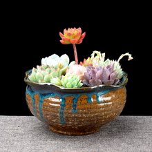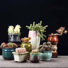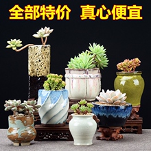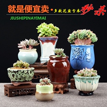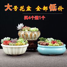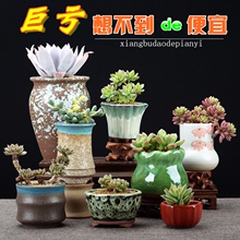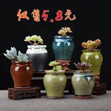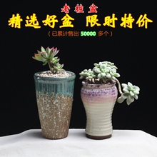 【默默】多肉花盆植物大号陶瓷流釉粗陶透气创意绿植盆栽特价清仓