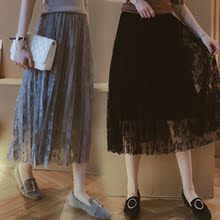 A0536-2017春新款韩版女装甜美淑女网纱中长裙A字蕾丝半身裙 0227