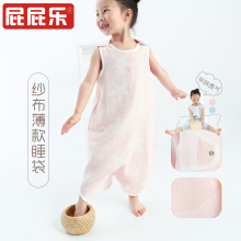 2层婴儿纱布睡袋宝宝防踢被夏季超薄儿童1-3-4岁双层薄款背心式棉