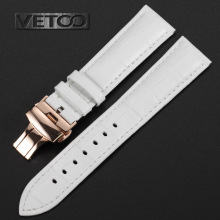 VETOO白色手表帶 玫瑰金蝴蝶扣 牛皮真皮表带18 20 22mm 男 女