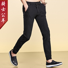 男士裤子夏季新款2017牛仔裤男修身直筒商务弹力薄款黑色男裤男装