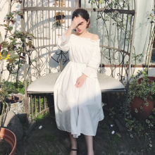 韩版纯色小性感一字肩松紧后背蝴蝶结中长裙女潮2017春装新款6183