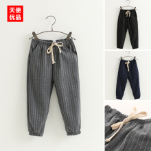 男女童裤子2016春秋装新款儿童宝宝竖条纹休闲哈伦裤小孩时尚长裤