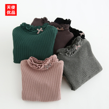 女童秋冬装2016新款童装儿童花边高领加绒打底衫宝宝纯色长袖T恤