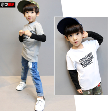 小贝潮品童装男童长袖t恤 儿童打底衫假两件春秋韩版春装2017新款