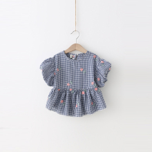 杨梅童装2017夏季儿童格子娃娃衫宝宝泡泡袖短款上衣女童短袖T恤