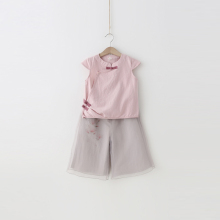 宝宝套装 杨梅童装2017夏新款盘扣上衣+印花阔腿裤 女童两件套 特